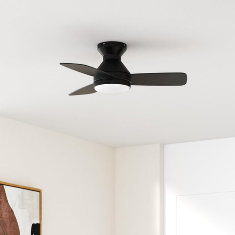 Ceiling Fans with Lights, 30 inch Low Profile Ceiling Fan with Light and Remote Control, Flush Mount, Reversible, 3CCT, Dimmable, Noiseless, Black Ceiling Fan for Bedroom, Indoor/Outdoor Use